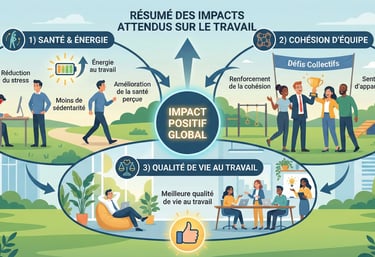 Amélioration du bien-être, réduction du stress et meilleure cohésion d’équipe.
